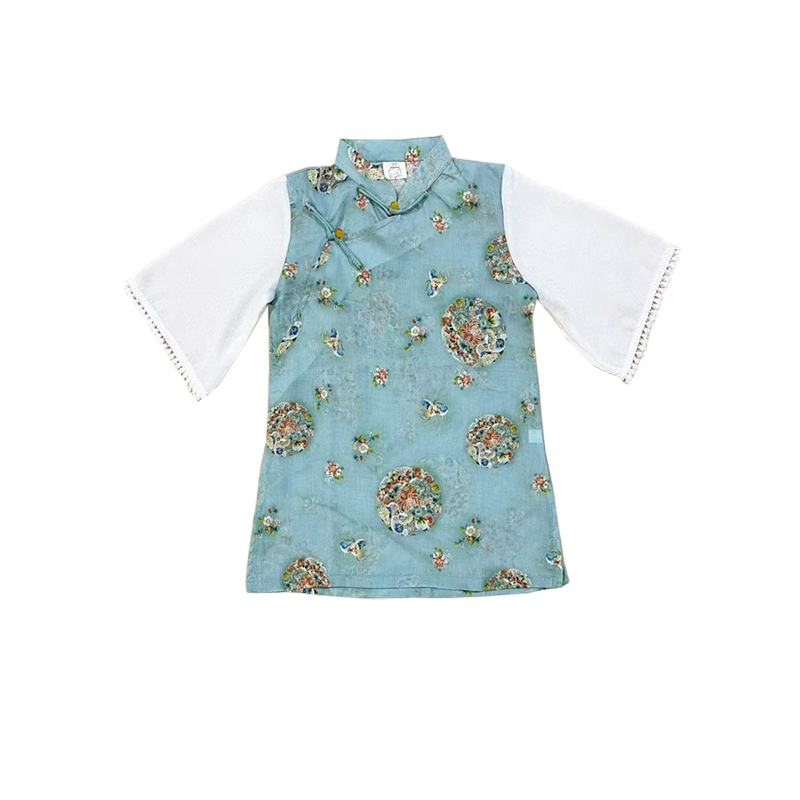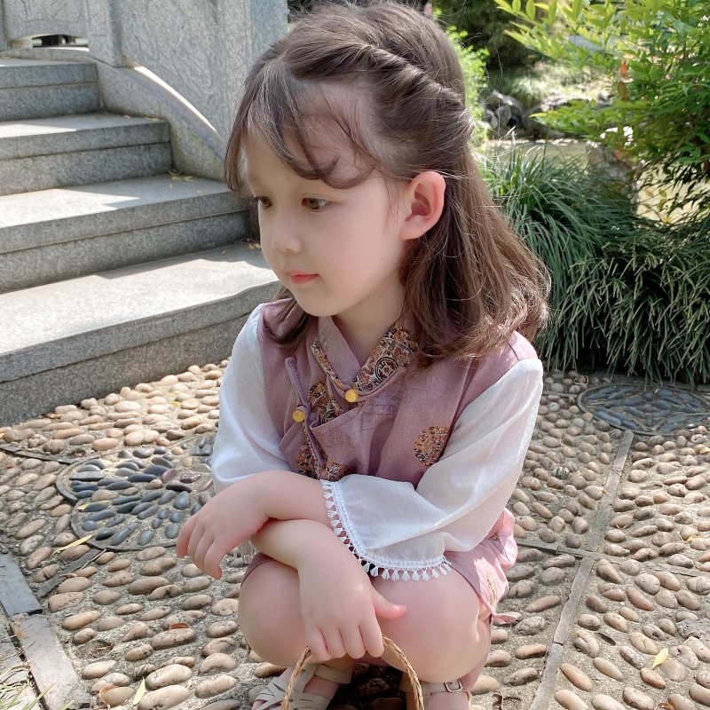Girls' mid-sleeve light and thin hemp cheongsam 2022 summer clothes children's baby improved stitching Chinese style dress
