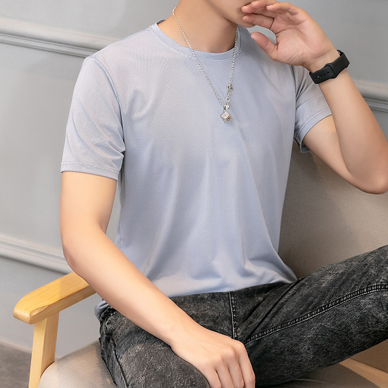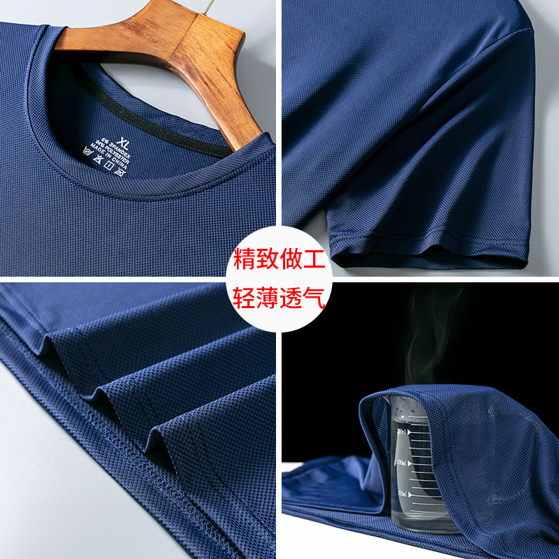 Ice silk short sleeve T-shirt male 2021 new summer tide breathable loose large size movement speed dry half sleeve T-shirt blouse