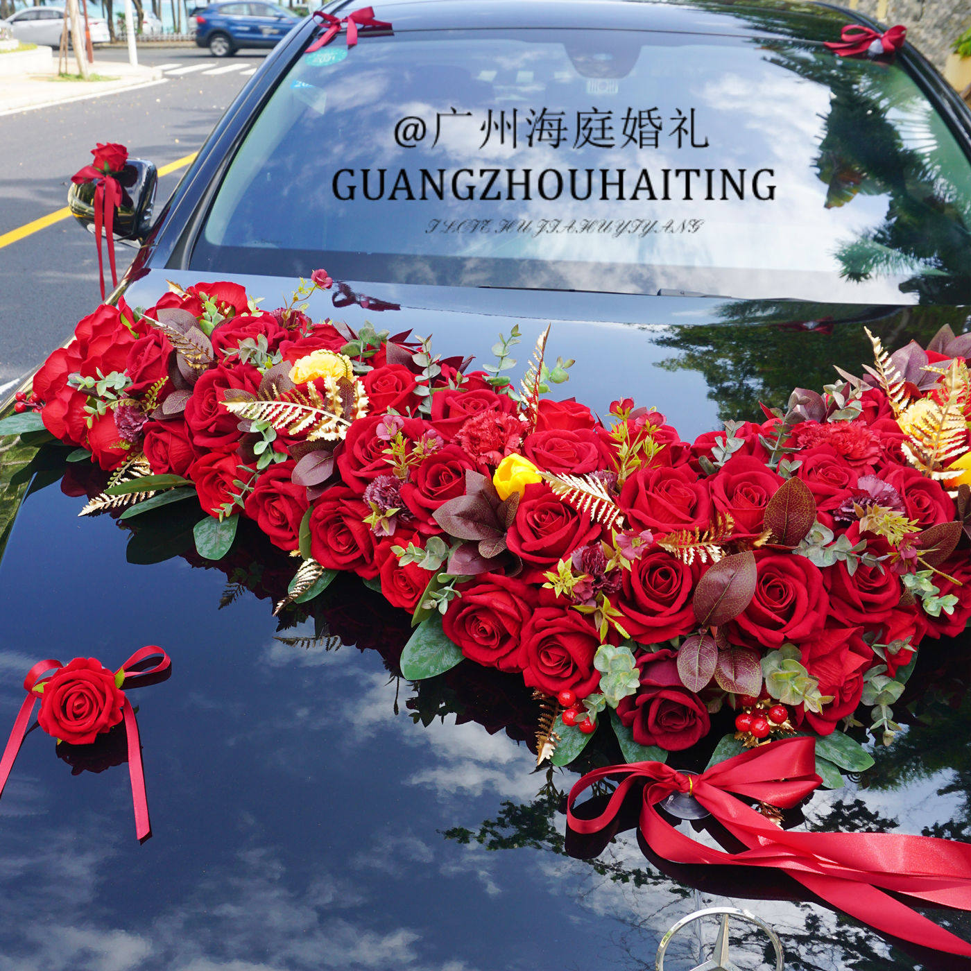 Big V Son Ensemble Main Wedding Car Decoration Car Head Flower Supplies Suit Emulation Flower Car Wedding Laflower Full Placement Creativity-Taobao