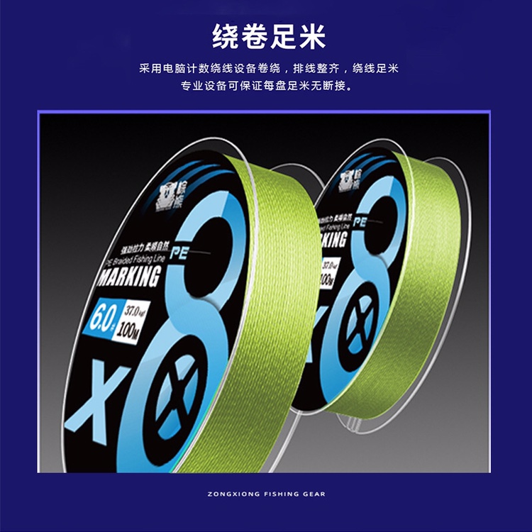 Vigorously horse fish line sub-line super strong pull special pe luya line 8 series of vigorous horse pe line high horsepower line green