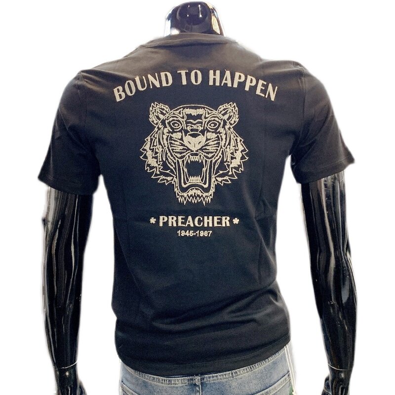 Hong Kong Tide Card Tiger Embroidery Short Sleeve T-shirt Male Summer New European Station Round Collar Manmade Man Half Sleeve Blouse