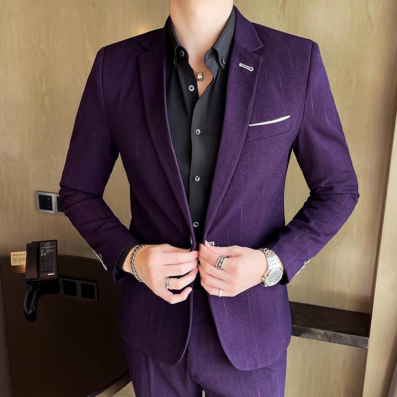 Suit men's suit Korean version slim groom best man wedding trend professional dark pattern suit three-piece suit formal dress