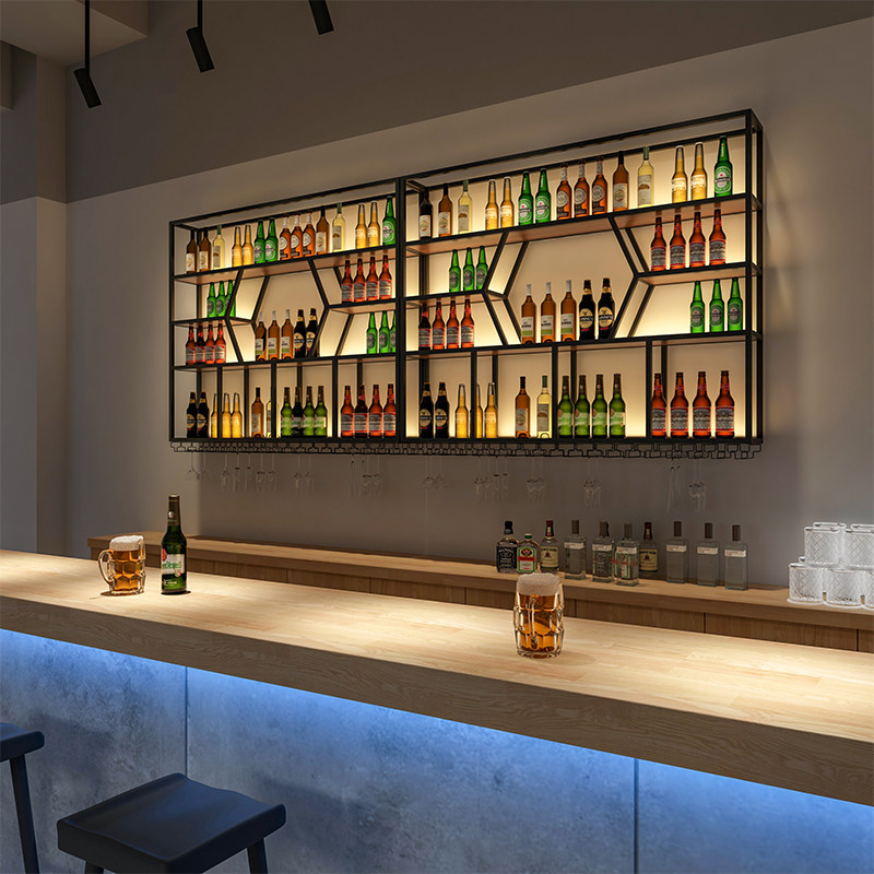 Bar Liquor Cabinet Leaning on Hanging Wine Rack Wall-mounted Shelf Restaurant Iron Art Red Wine Shelf Bar Wall Creative Show Shelf-Taobao