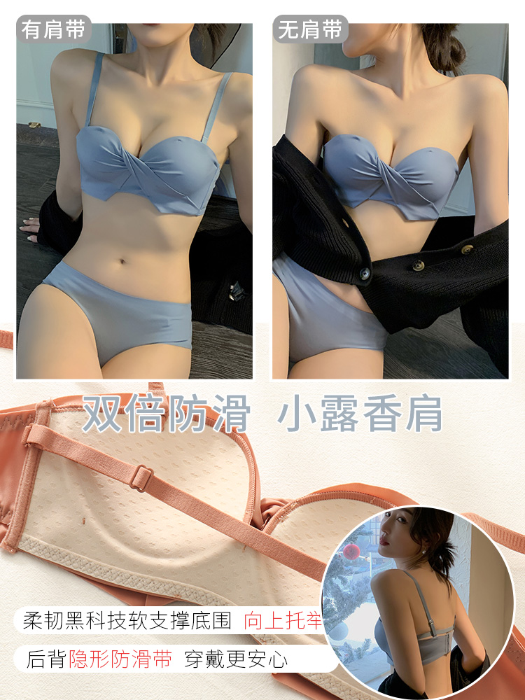 Small-breasted underwear Women gather flat-chested special summer thin bra no rimless strapless non-slip adjustment bra