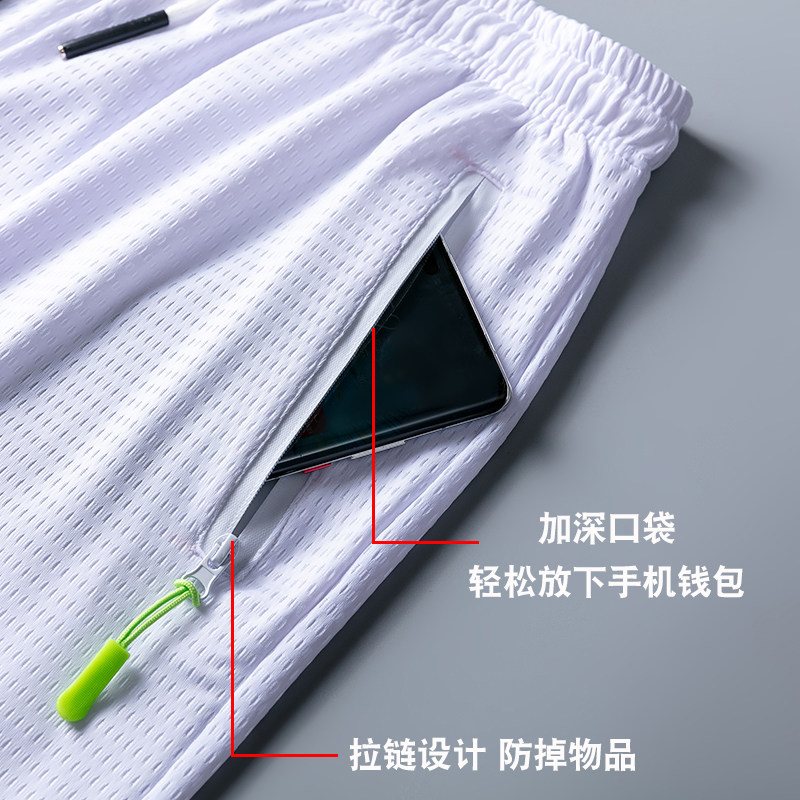 Sports shorts men's summer thin quick-drying ice silk zipper pocket five-point pants loose casual running basketball fitness