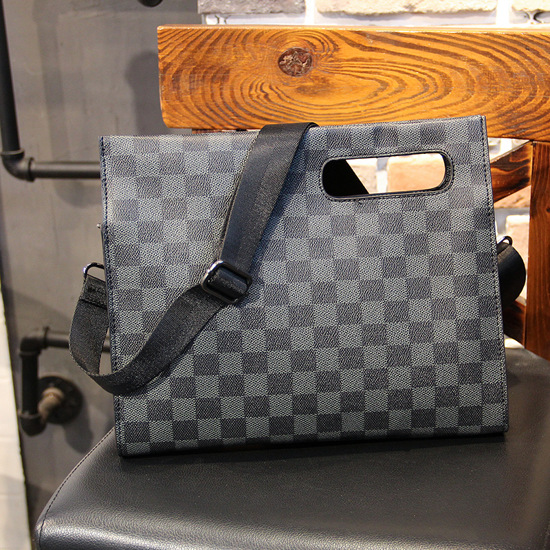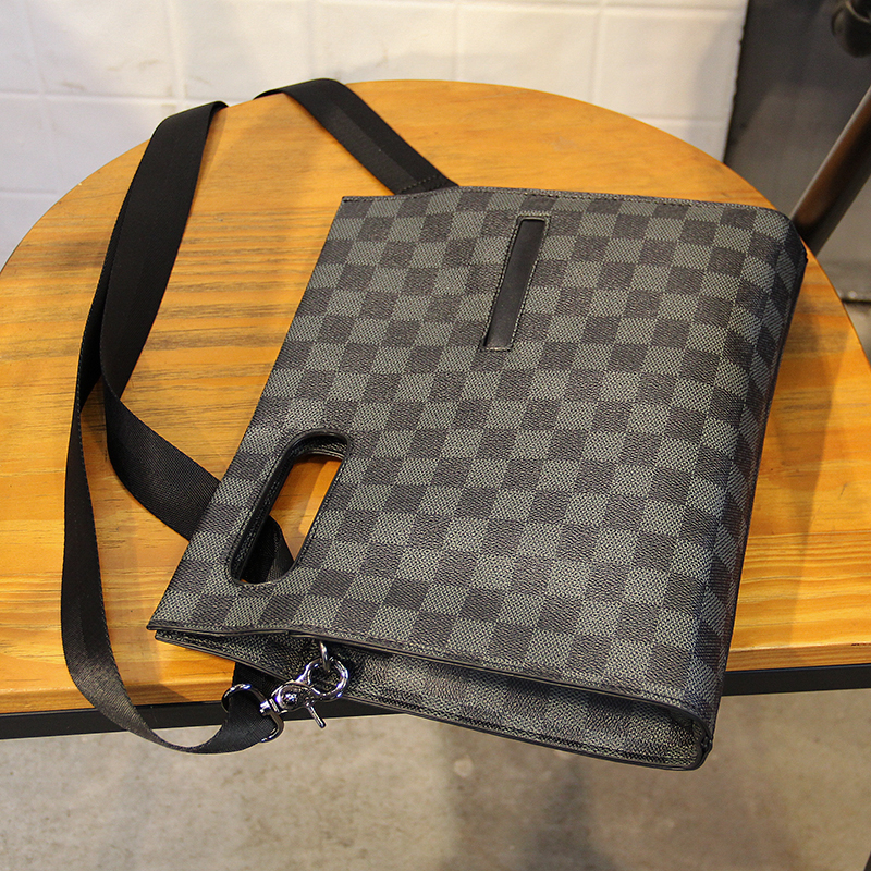 Men's checkered single shoulder bag inclined satchel boys trend satchel briefcase briefcase Daily Street Head fashion Shoulder Bag Handbag