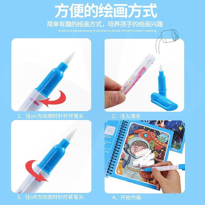 Water painting book repeatedly graffiti clear water children's puzzle early teaching magic water picture book baby drawing board girl painting artifact