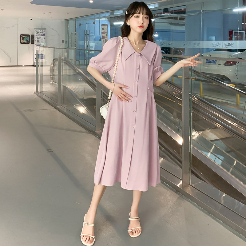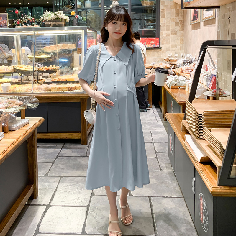 Pregnancy Woman Dress Summer Fashion Blouse Summer Fashion Flipped Over Knee Loose Pregnant Woman Shirt Blouse Summer Pregnant Woman Foreign Dress