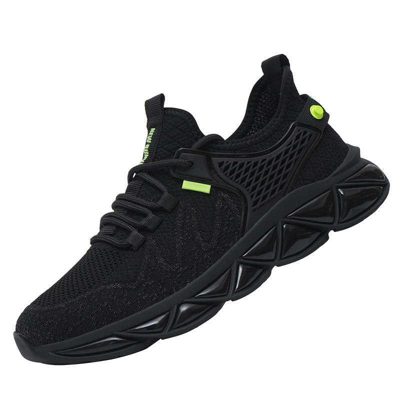 Flying weaving sports shoes men's summer soft bottom thin mesh shoes light breathable thick bottom black casual shoes men's trendy shoes