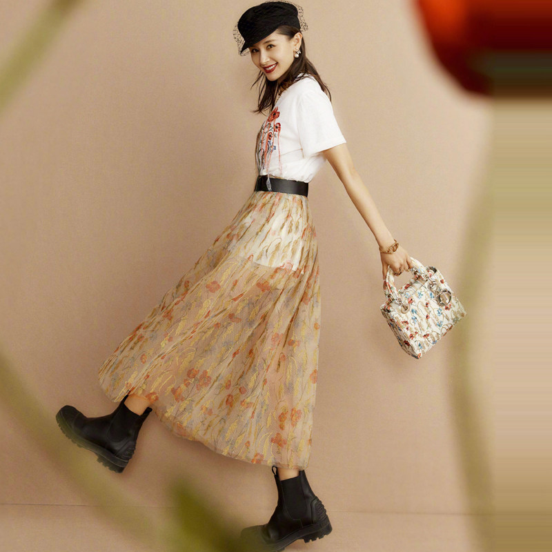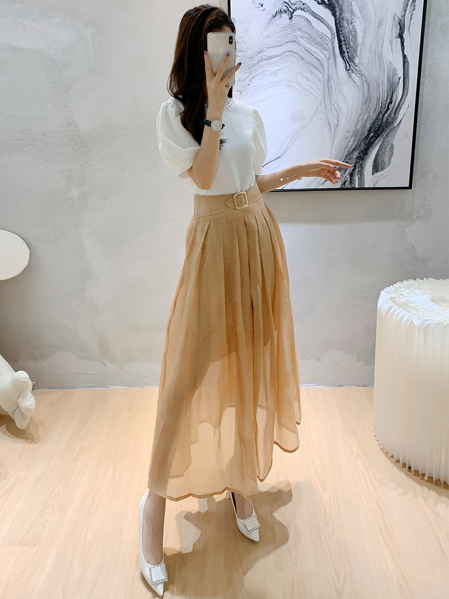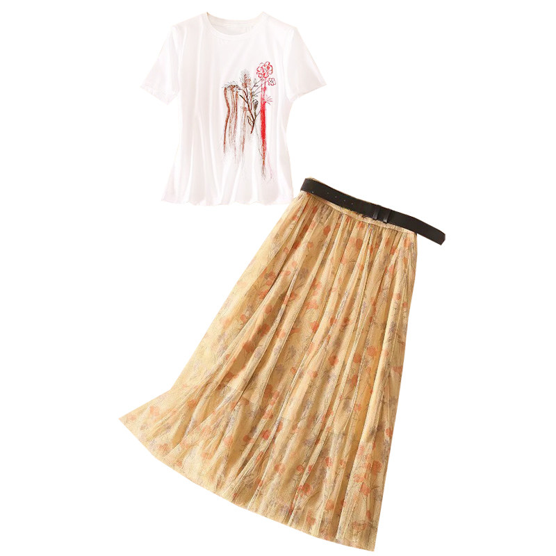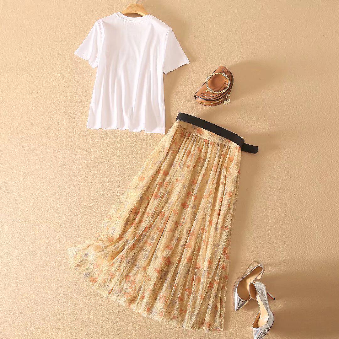 Prince Moon The same T-shirt Two nets Dress Half Skirt Suit White Advanced Sensfeel T-shirt Bright Silk Half Body Dress Two Sets