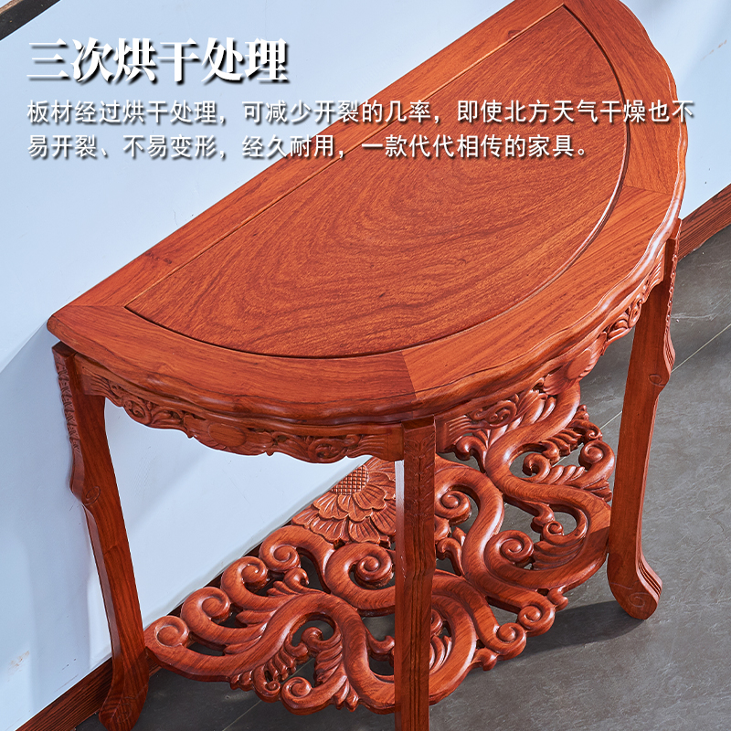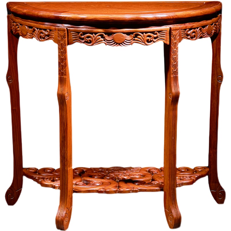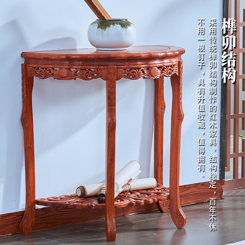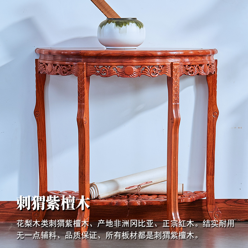 Hedgehog red sandalwood mahogany new Chinese entry porch table rosewood solid wood semi-circle bonsai rack porch table half platform