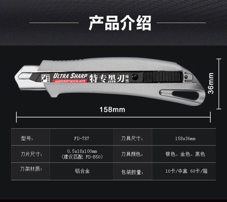 Beauty workout knife pecking wood FD-787 7814 wallpaper knife large size blade heavy aluminum alloy stainless steel knife sheath
