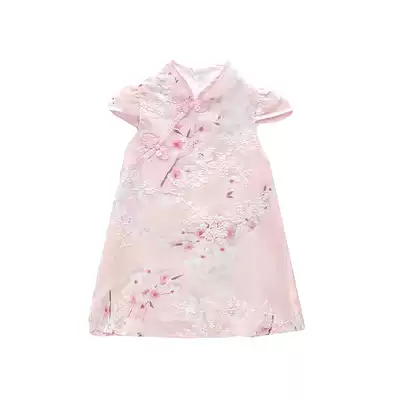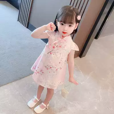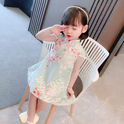 Girls' cheongsam summer dress dress 2021 new female baby Summer improvement Chinese style retro embroidery Hanfu skirt