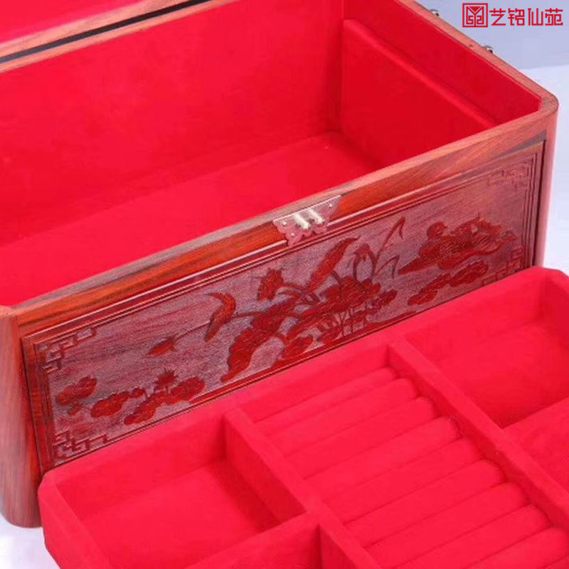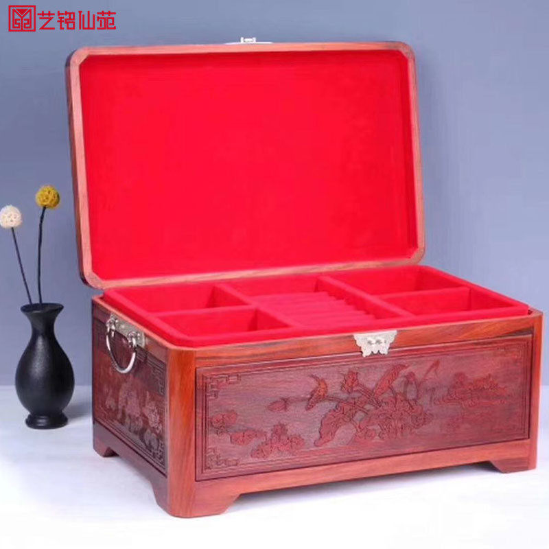Big red rosewood jewelry box wedding mahogany storage box Chinese style solid wood cosmetic box large capacity