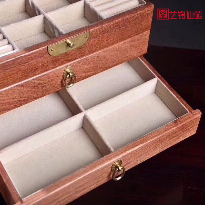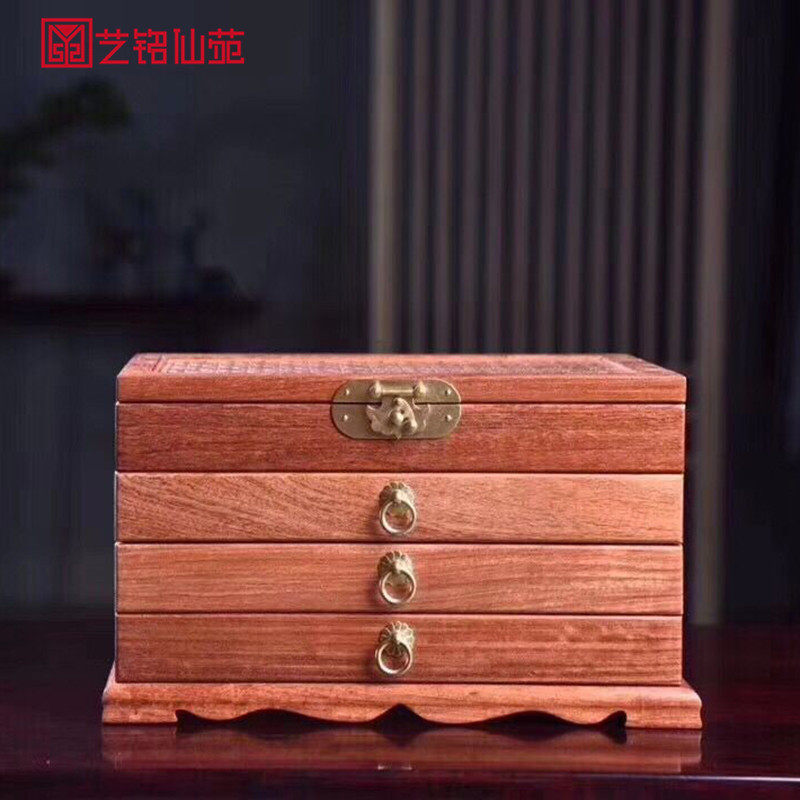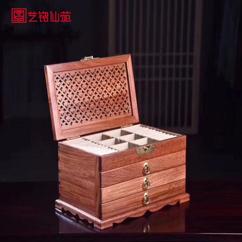 Burmese pear three-pump jewelry box bracelet jewelry jewelry box mahogany home dressing table desktop storage box