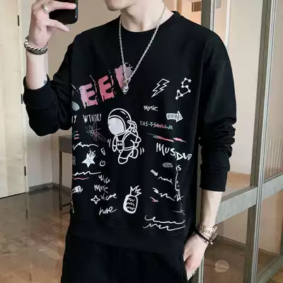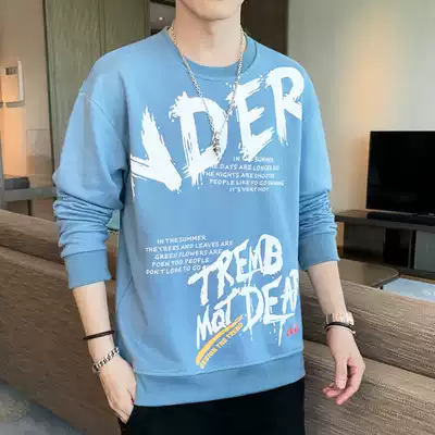 Long sleeve T-shirt men spring and autumn 2021 new trendy ins Tide brand loose Joker print coat men's thick T-shirt