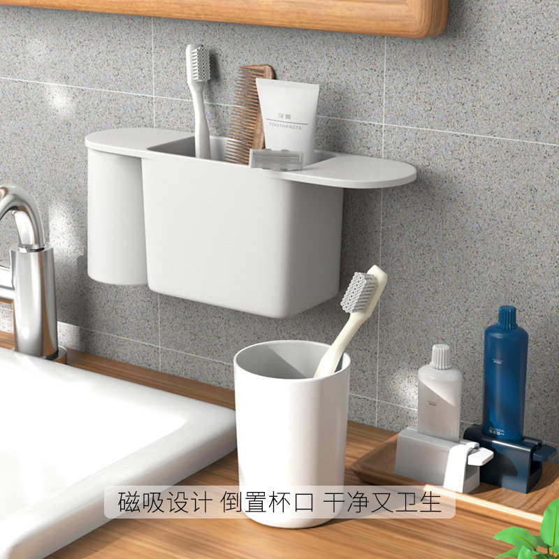 Magnetic suction mouthwash cup toothbrushing cup toothbrush holder tooth cylinder hanging wall type couple tooth cup wash mesh red and female Ins wind