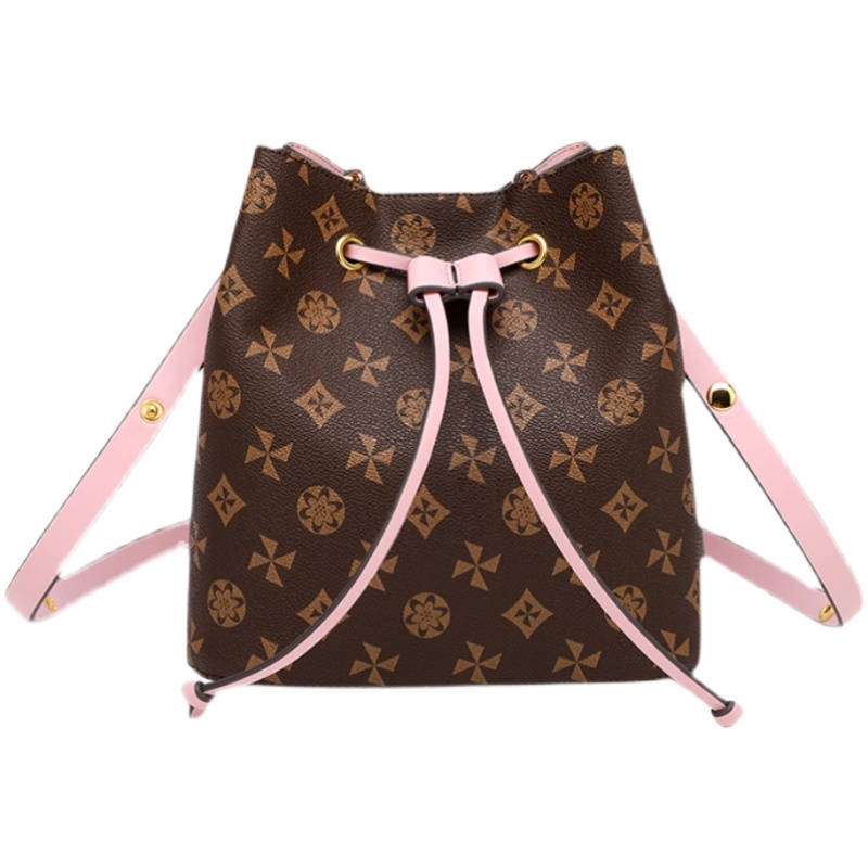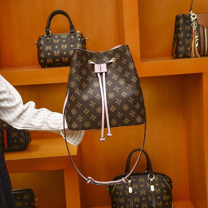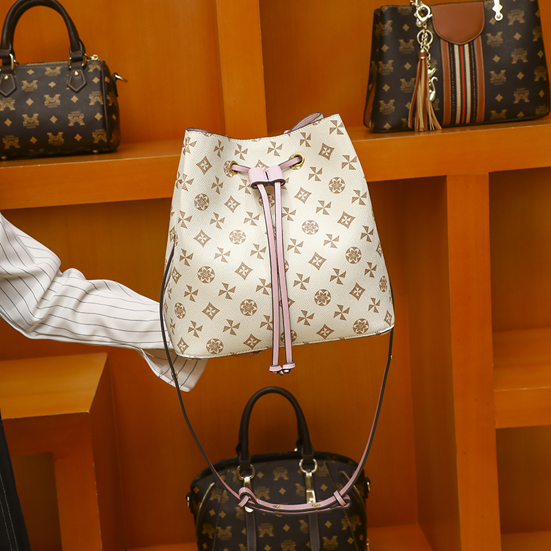 French DUDK luxury brand leather drawstring bucket bag old flower women's bag large-capacity one-shoulder retro messenger bag