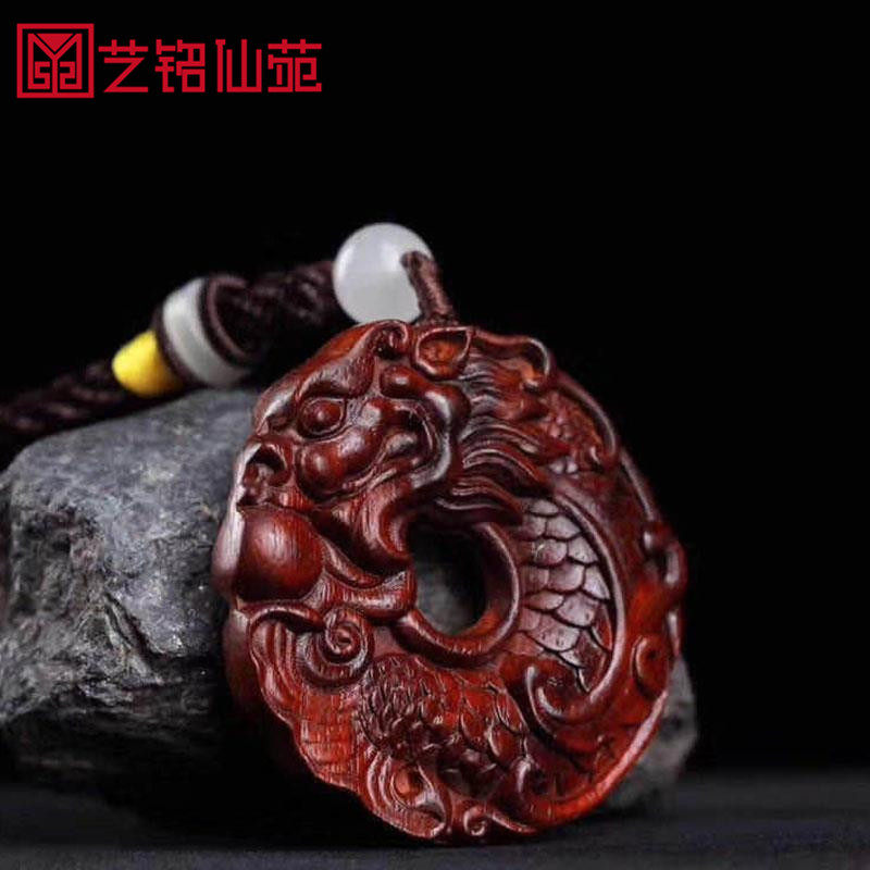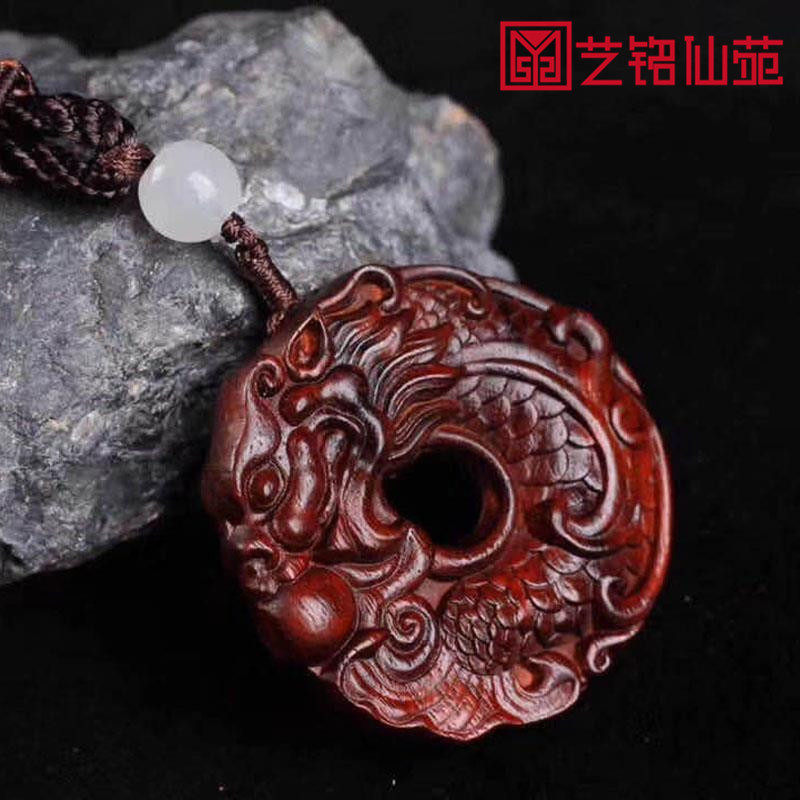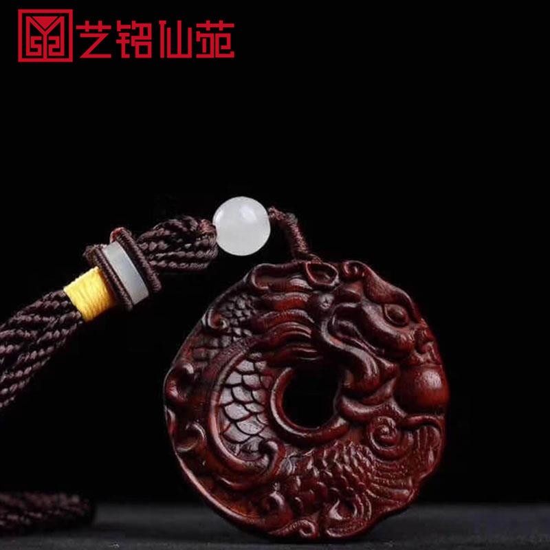 Yiming Xianyuan small leaf red sandalwood safety buckle pendant men's necklace carp dragon protector