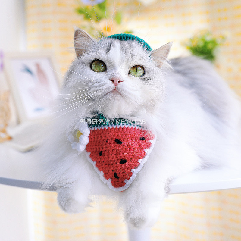 A Meow Research Institute original new product cat scarf summer cute watermelon hat pet saliva towel hand-woven