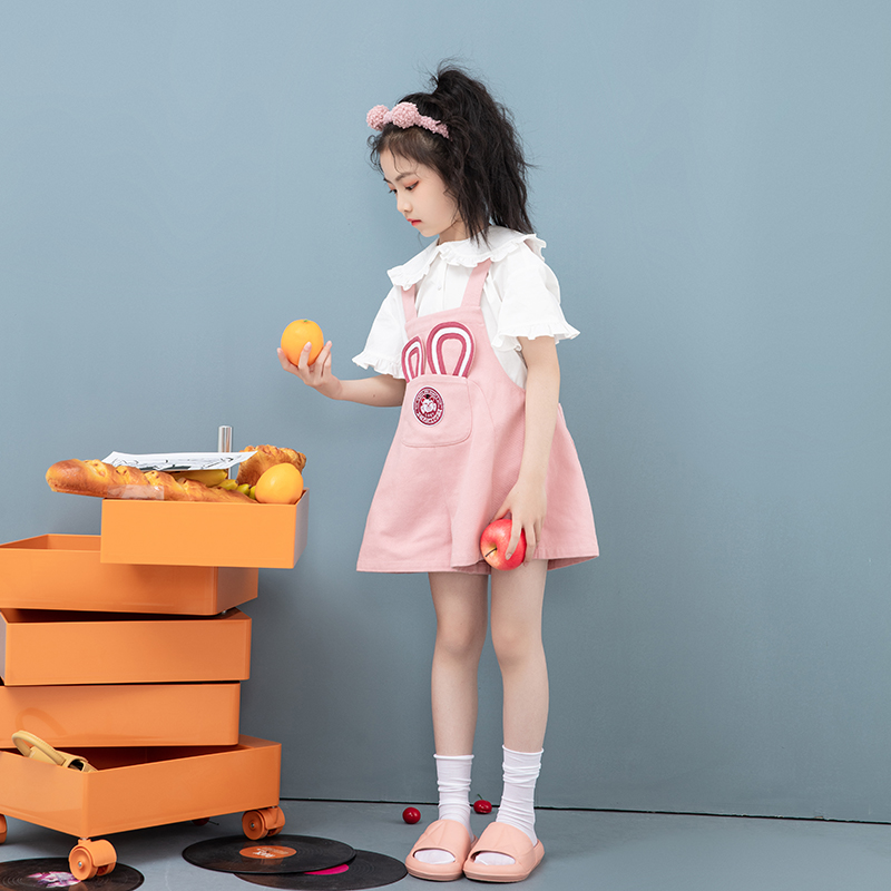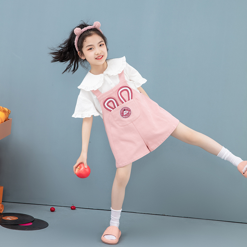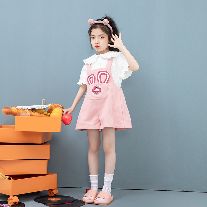Original cartoon pattern girls overalls 2022 summer new pink foreign style pure cotton wide-leg pants children's girls