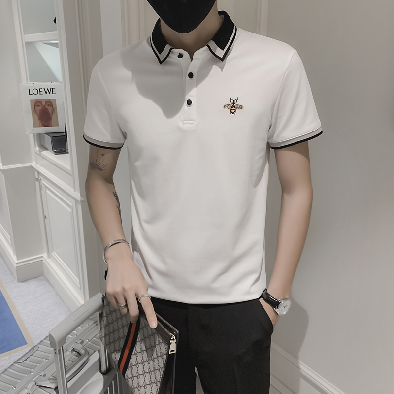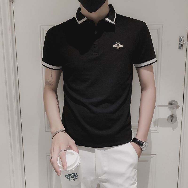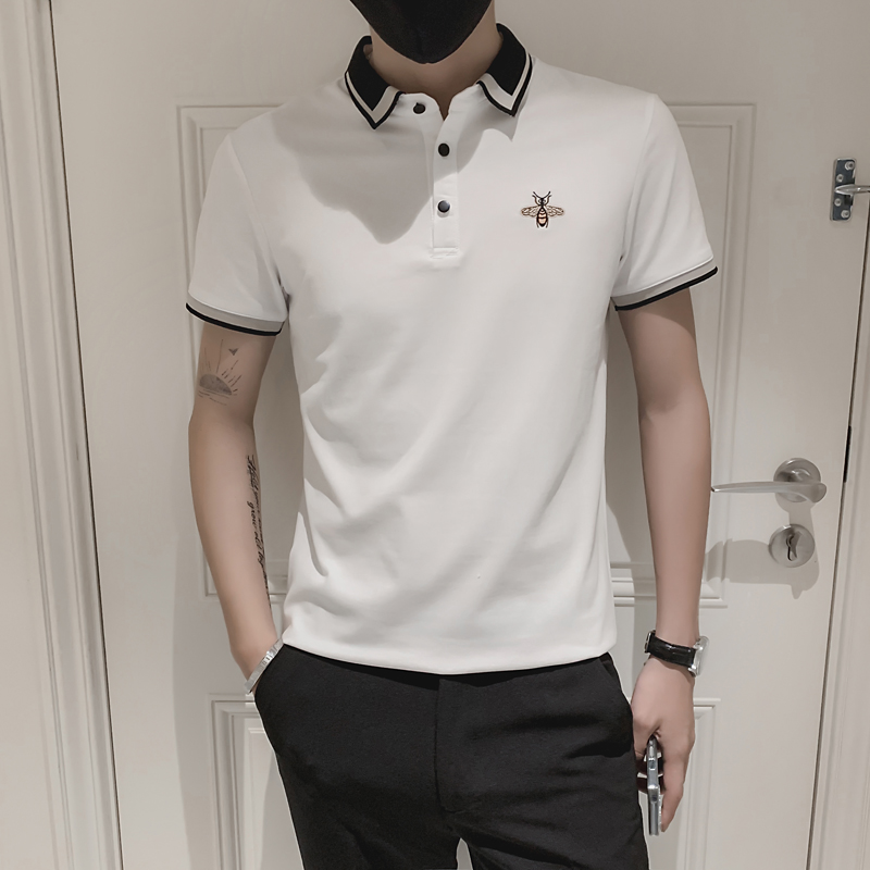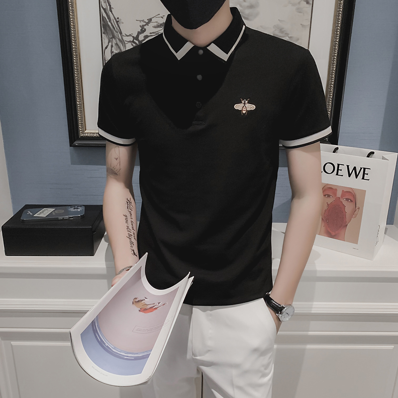 High-end Knit Embroidered Spirit Polo Shirt Male Tide Card Short Sleeve Summer Thin size Size Collared men's T-shirt