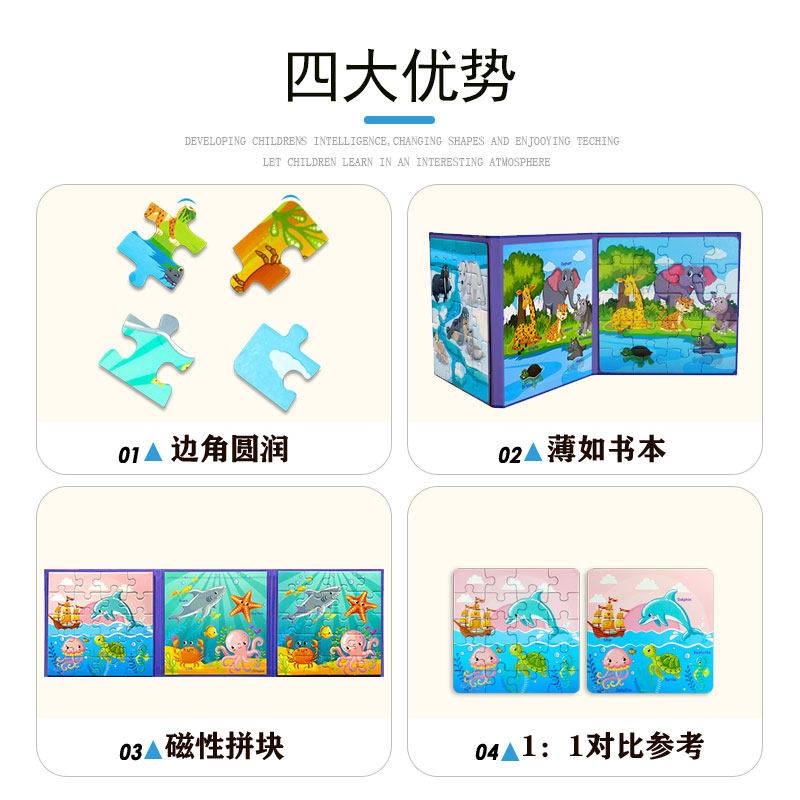 Magnetic home children's educational puzzle magnetic toy kindergarten 3-4-6 years old marine land animal magnetic puzzle