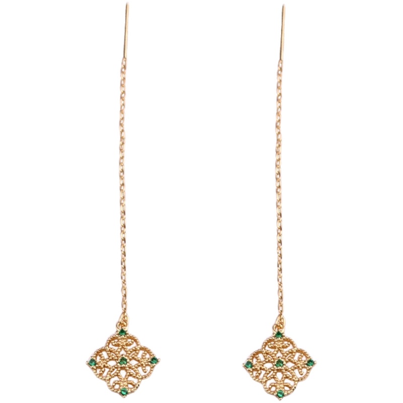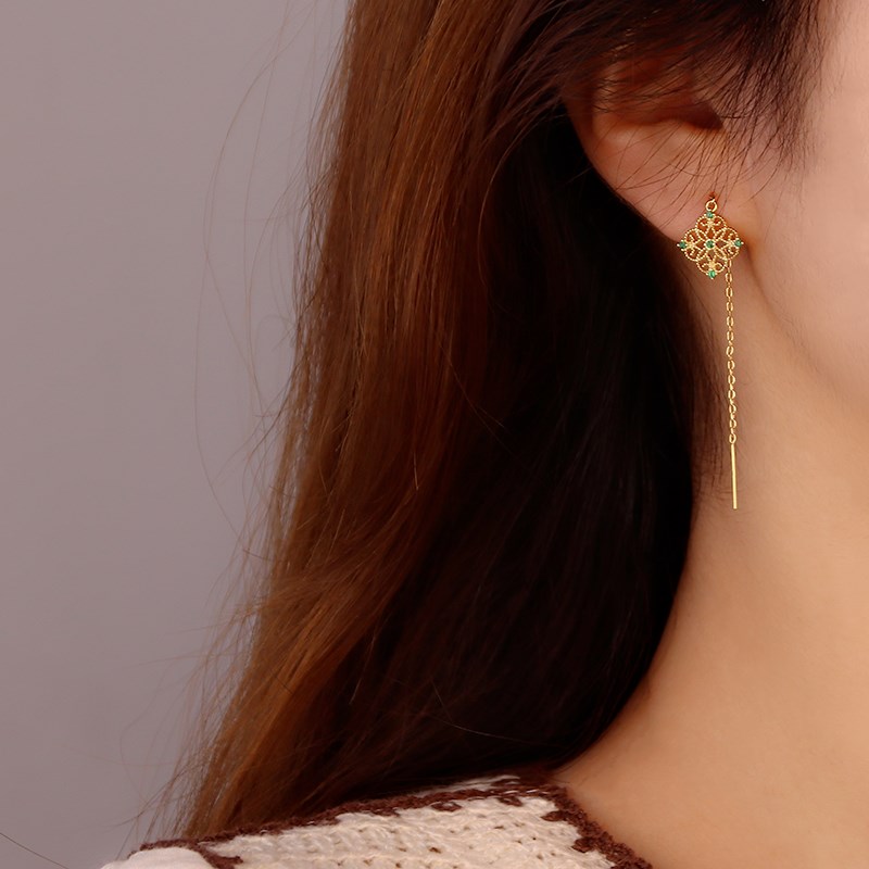 s925 silver ancestral mother green ear necklace woman 2022 new wave qi quality light extravagant advanced sensuous face thin long stream suearrings