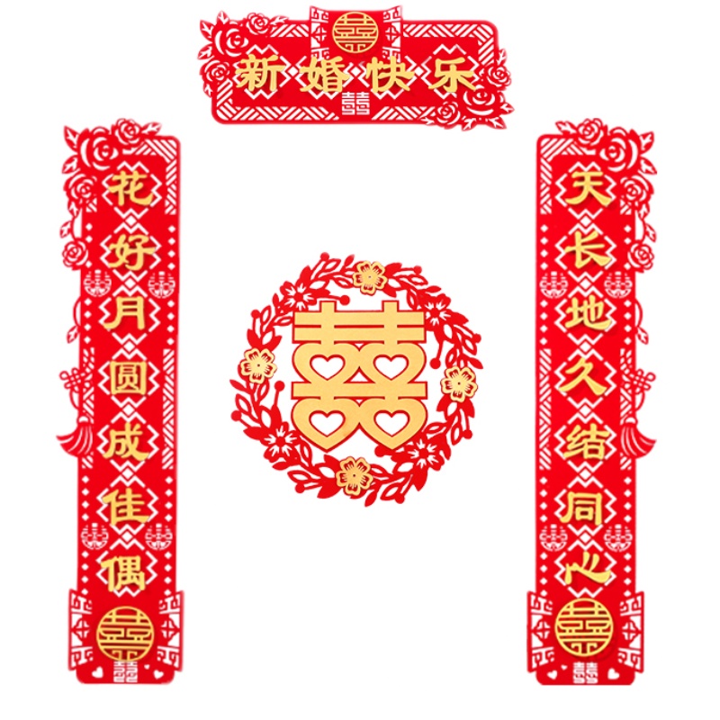 Wedding couplet Man's wedding room Woman's wedding newlywed door set Wedding Xi Lian Xi word decoration supplies full set