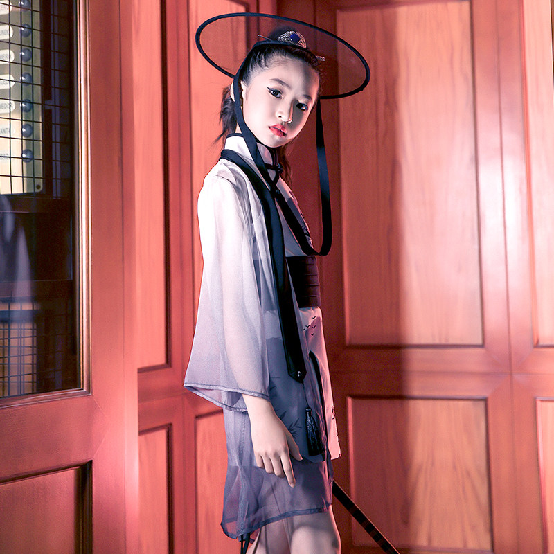 61 Children's State Chaos to Serve Male And Female Models Water Ink China Wind T Walk Show Suit Qipao Performance Suit