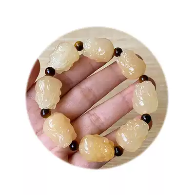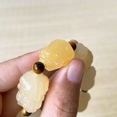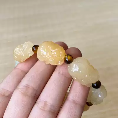 Yellow dragon jade Pixiu hand string Jade hand chain Pixiu lucky gathering God of wealth beast three-dimensional carving Carved Pixiu hand chain