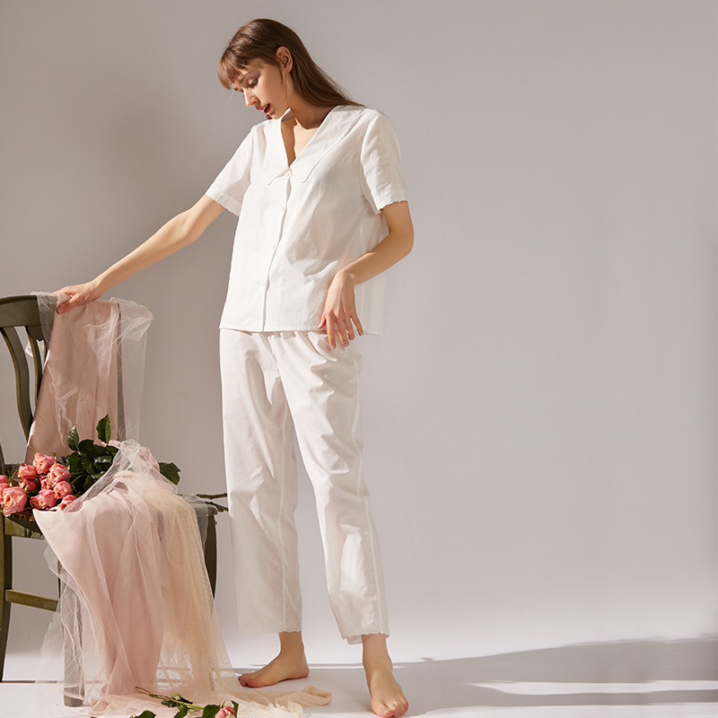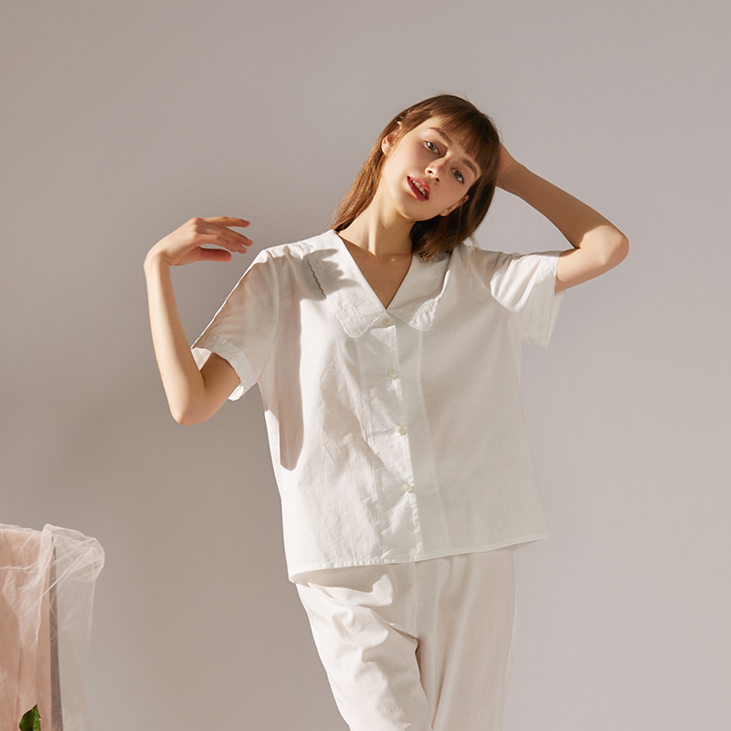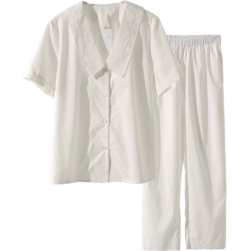 XEXZ2022 new pajamas women's summer thin section short-sleeved comfortable embroidered home clothes set simple two-piece
