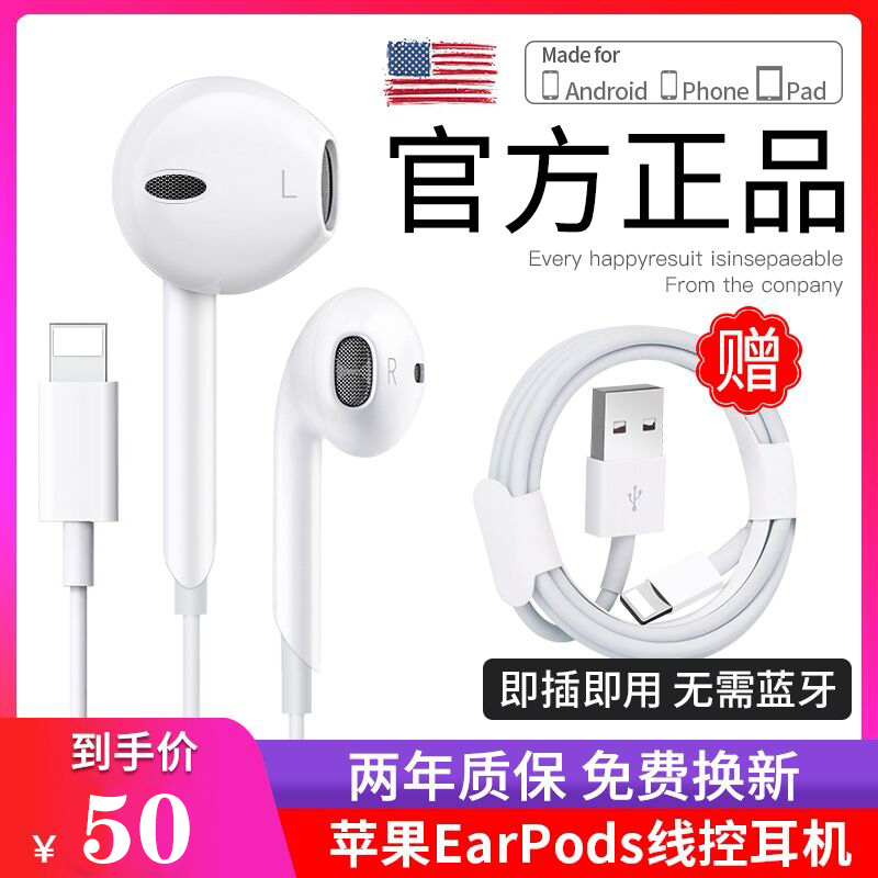 Original fit for apple apple ear machine line iPhone12 11 8 x xr 7 i7p 8plus pro phone earplugs with wire control in ear style