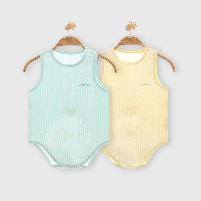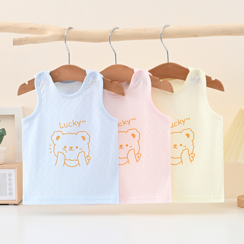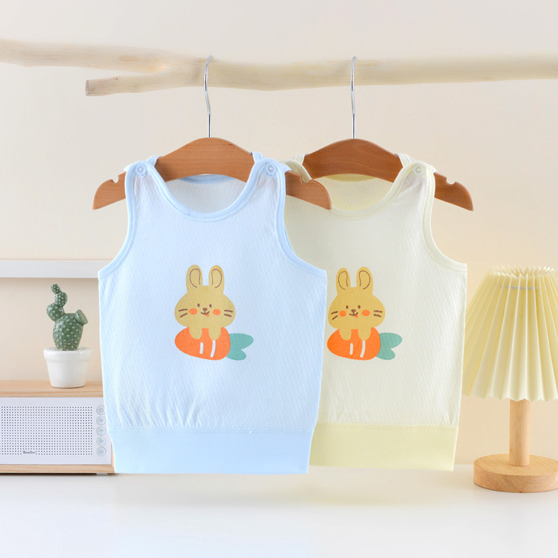 Yingmeiqi pure cotton ultra-thin mesh vest summer 0-2 years old male and female baby shoulder buckle knitted inner wear thin style