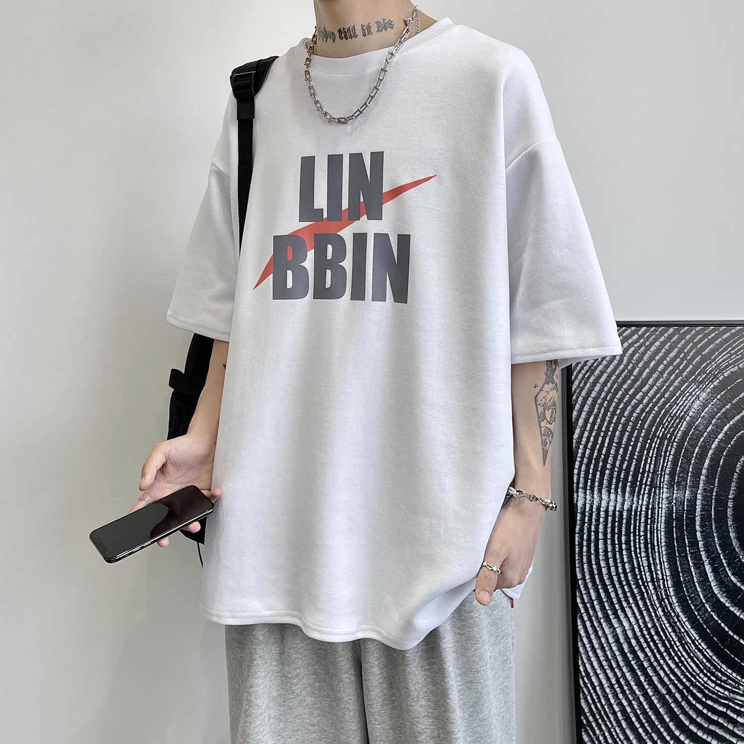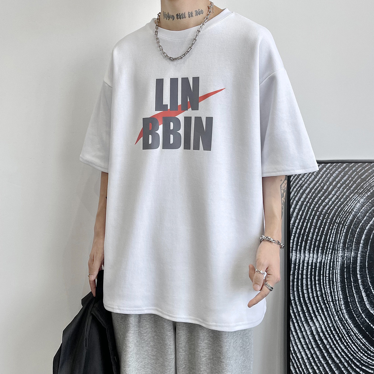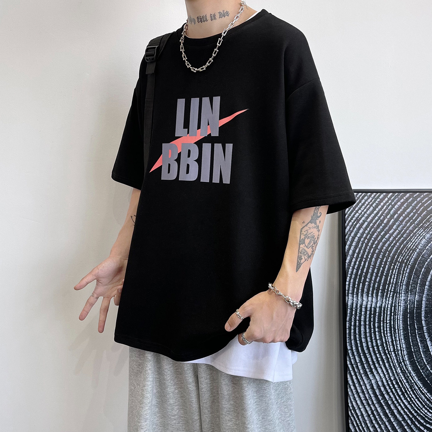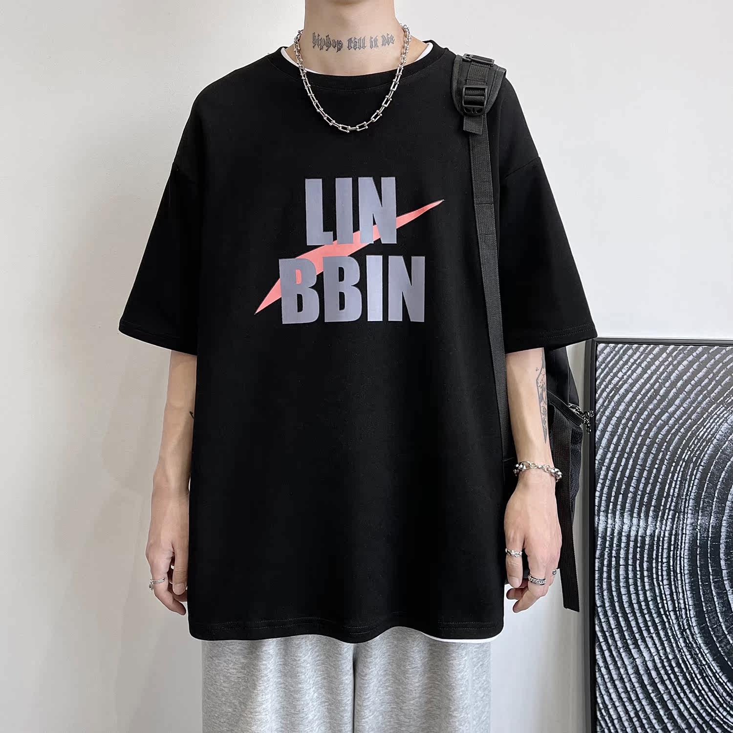 2021 new men's dress letter printed short sleeves T-shirt male summer Chauded with wind blouse loose 100 lap clothes