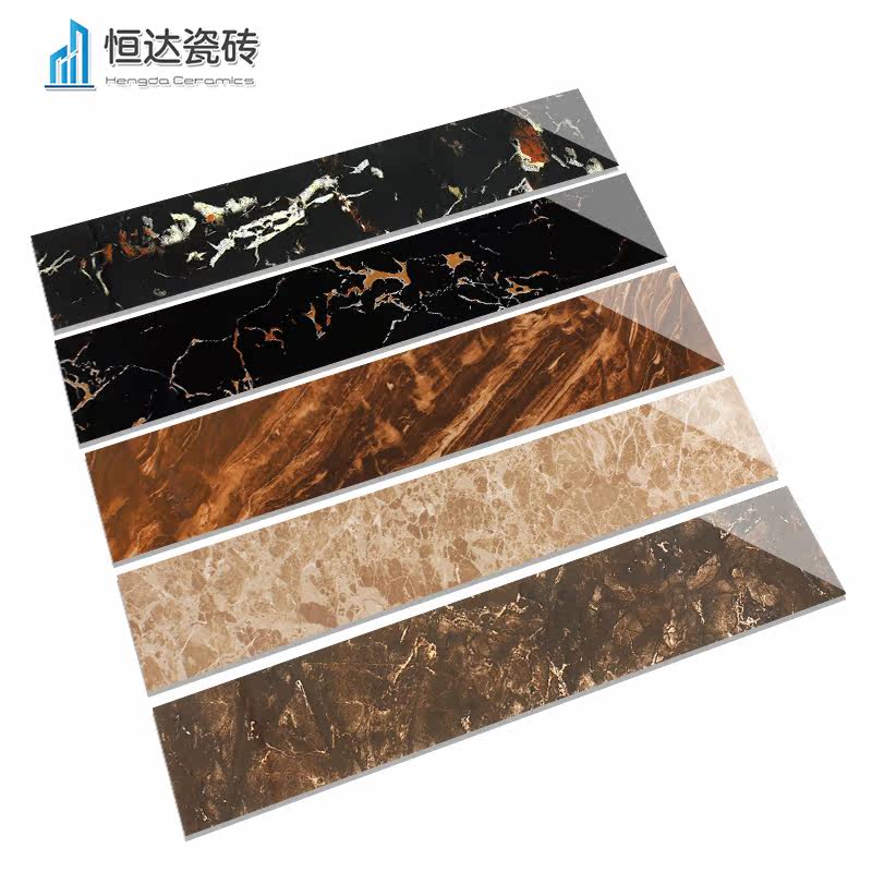 Skirting board tile 100x800 floor tile black golden flower body marble modern living room bedroom aisle skirting line