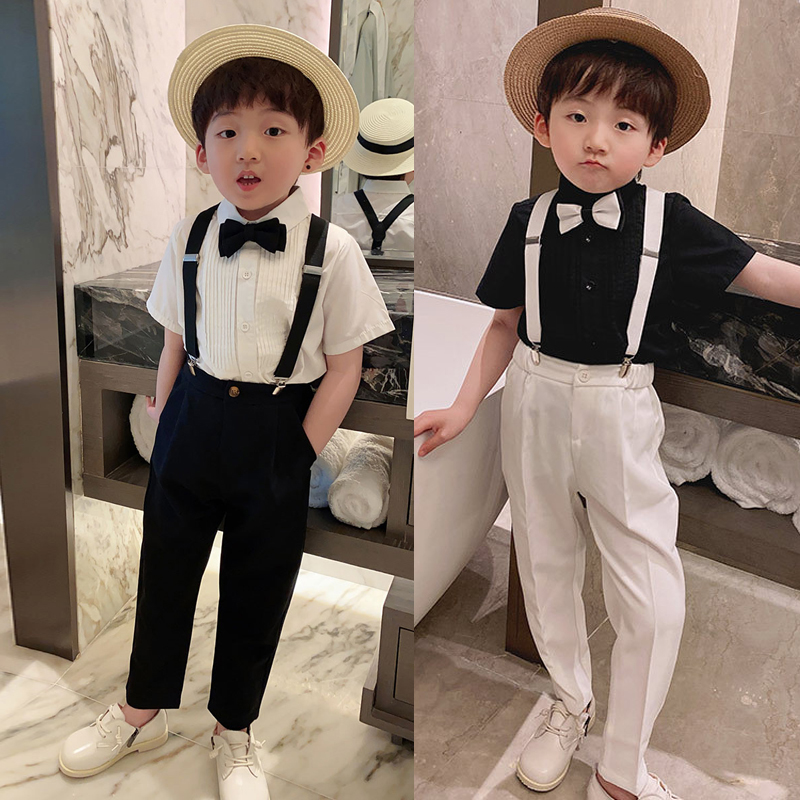 White (Long shirt trousers baby bag bow Tie) White (short shirt trousers baby bag bow tie) Black (Short shirt trousers baby bag bow tie) White (Short shirt shorts baby bag bow tie)Black(Short shirt shorts baby bag bow tie