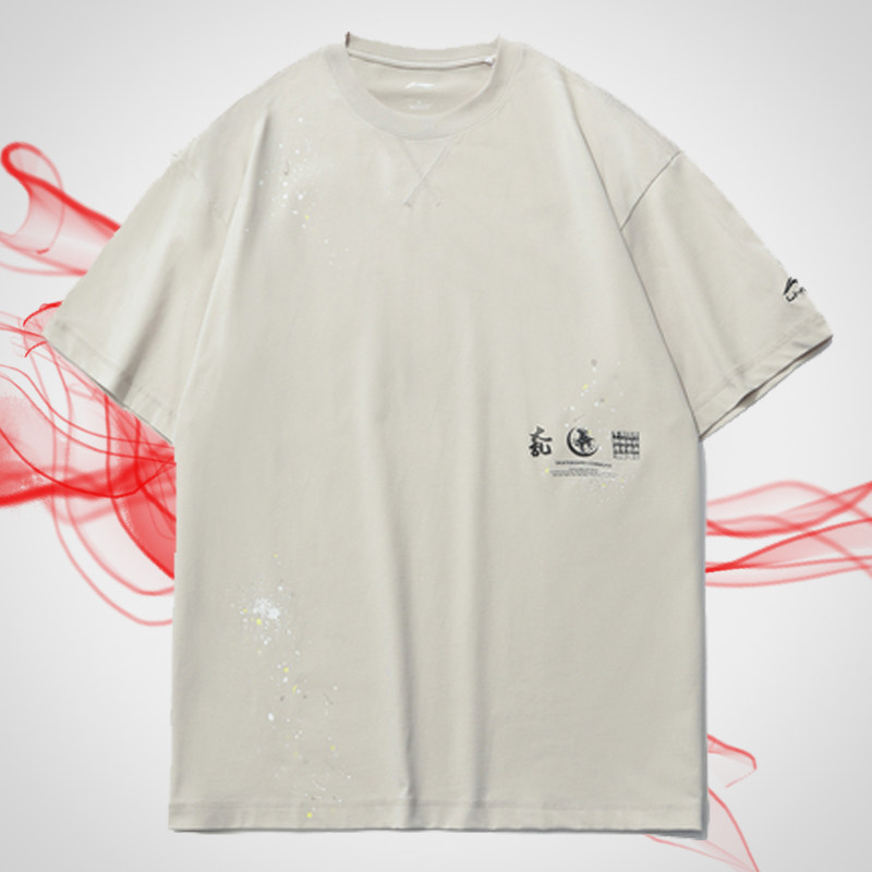 Li Ning Short Sleeved Men's Summer Skating Road Society Series relaxed Leisure Circular Tide Sports T - shirt AHSR 081