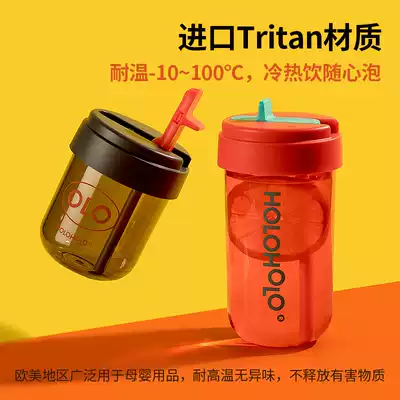 HoloHolo summer straw water cup Heat-resistant resin Tritan portable accompanying cup Leak-proof cup Children's water cup