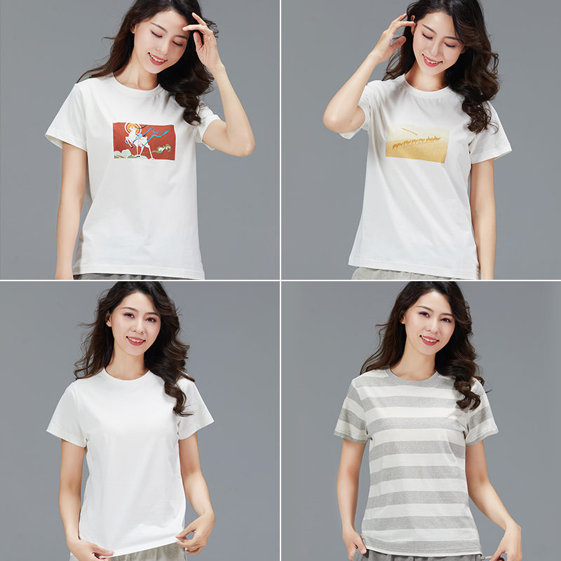 Vegetarian Dunhuang Natural Organic Color Cotton T-shirt Summer Pure Cotton Lovers sweat short sleeves Men and women Cotton Cotton Breathable Half Sleeves