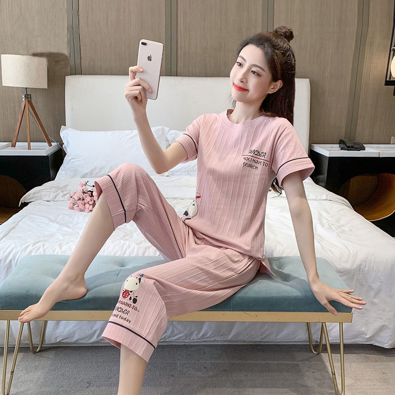 100% pure cotton full cotton pyjamas woman summer short sleeves 80% pants outside wearing princess wind large size for spring and autumn family clothes