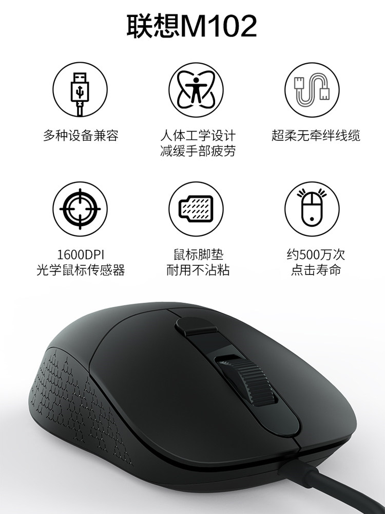 Lenovo Wireless Mouse M120 Usb Wired Slip Rat Home Optoelectronics Apple Desktop Computer Girls Cute Notebook Office Computer Game Slip Rat HP M22 Dell Internet Café Universal