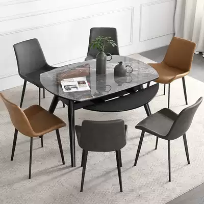 Small apartment multi-function folding, pull, push, pull, telescopic deformation can be round rock board dining table dual-purpose dining table household