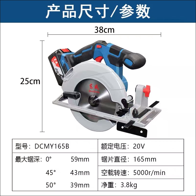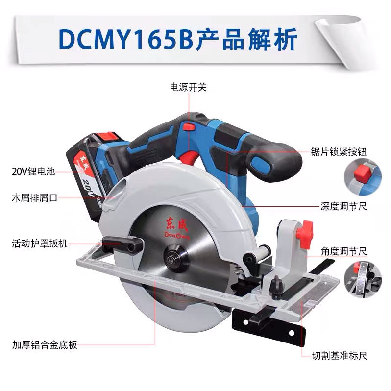 Dongcheng lithium electric brushless DCMY165 circular sawing machine rechargeable multifunctional handheld woodworking hand disc saw 20v