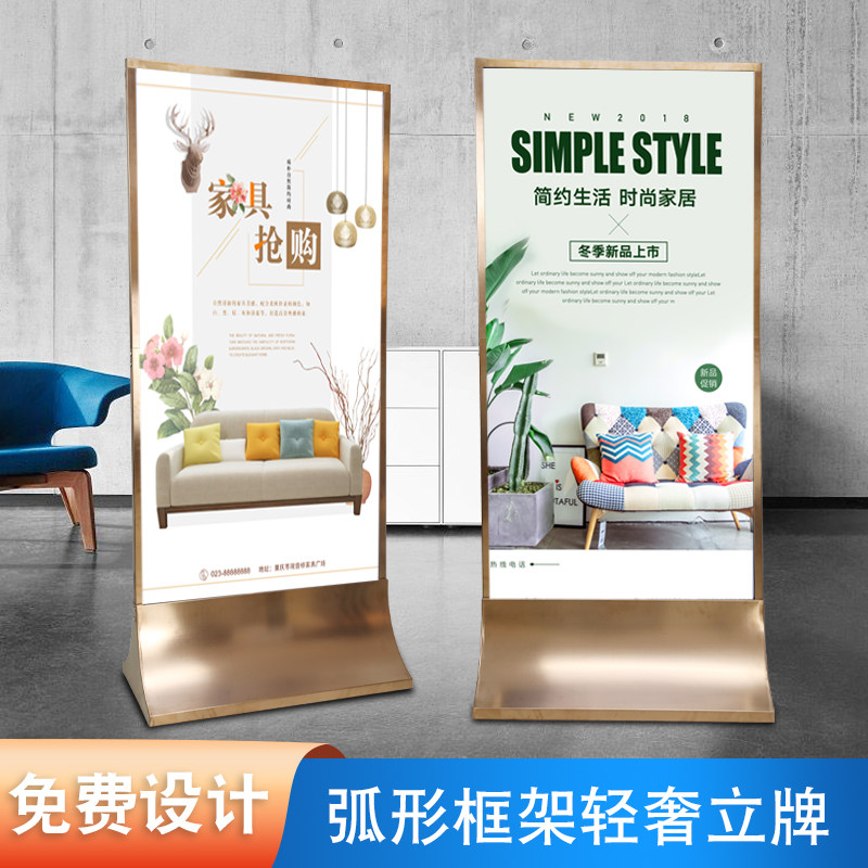 Propaganda Billboard Stainless Steel Waterboard Display Card Glass Stand-up Door Type of the Magnificent Screen Exhibition Stand Vertical Landing