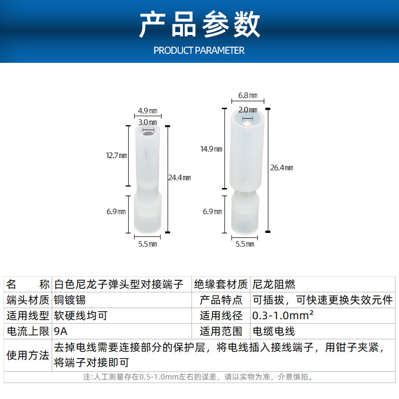 100 sets of white docking terminal nylon bullet head 0 5 - 078 cord wire docking wire to plug terminal