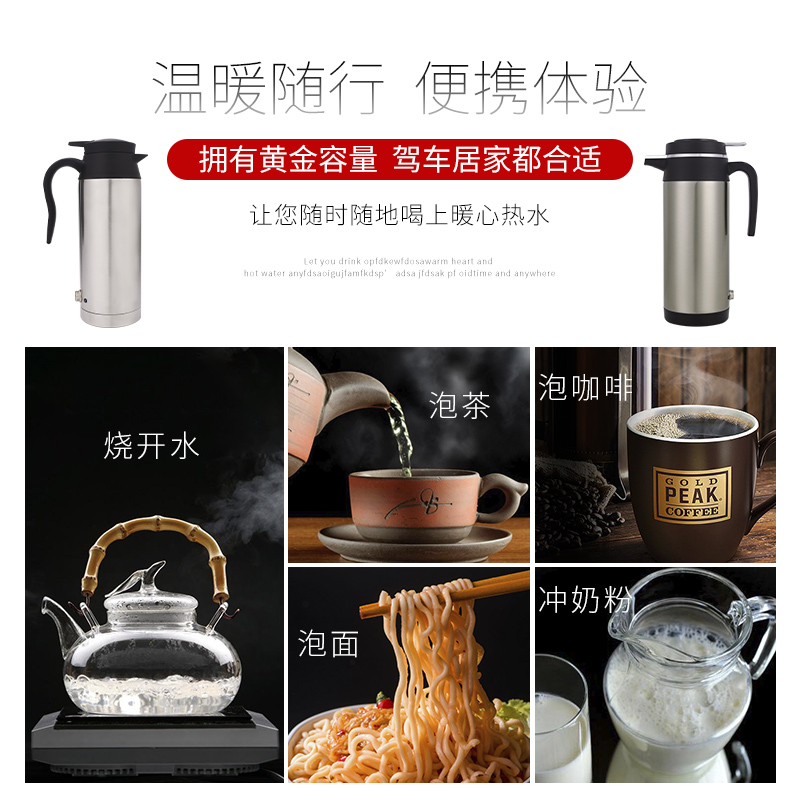 Large-capacity quick-cooking pot car electric heating insulation cup 12V24V heating water cup stainless steel heating kettle