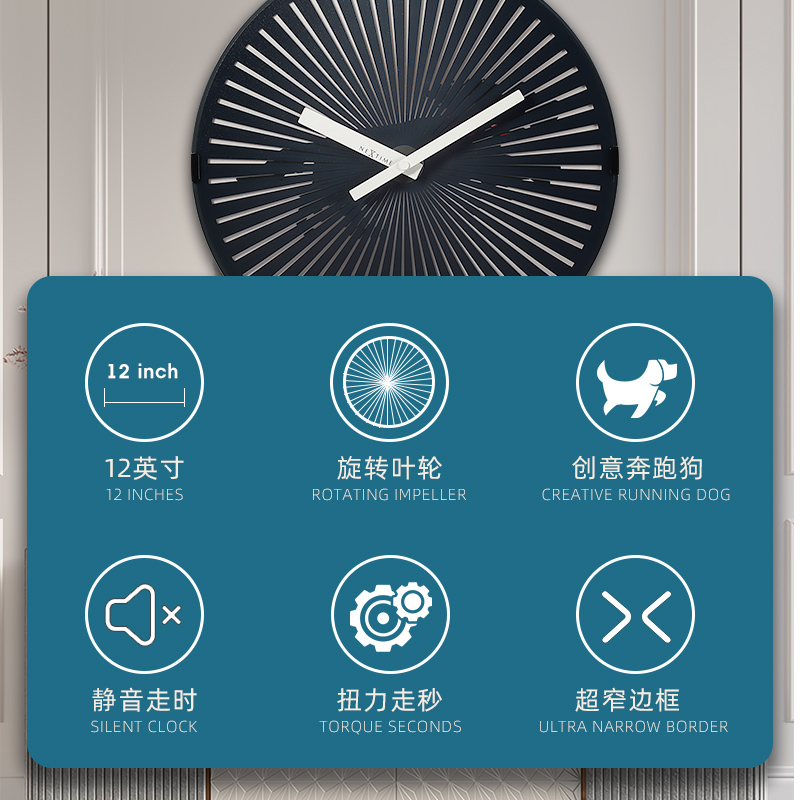 Nextime Dutch Standing Day Personality Running Dynamic Hanging Clock Living Room Office Bedroom Mute Watch 12 inch
