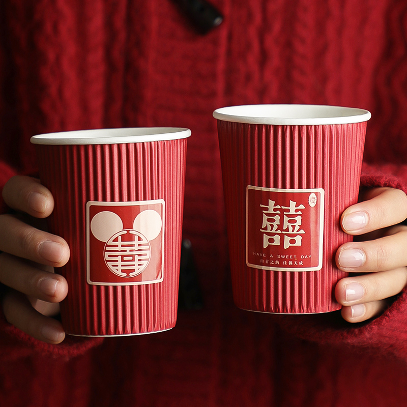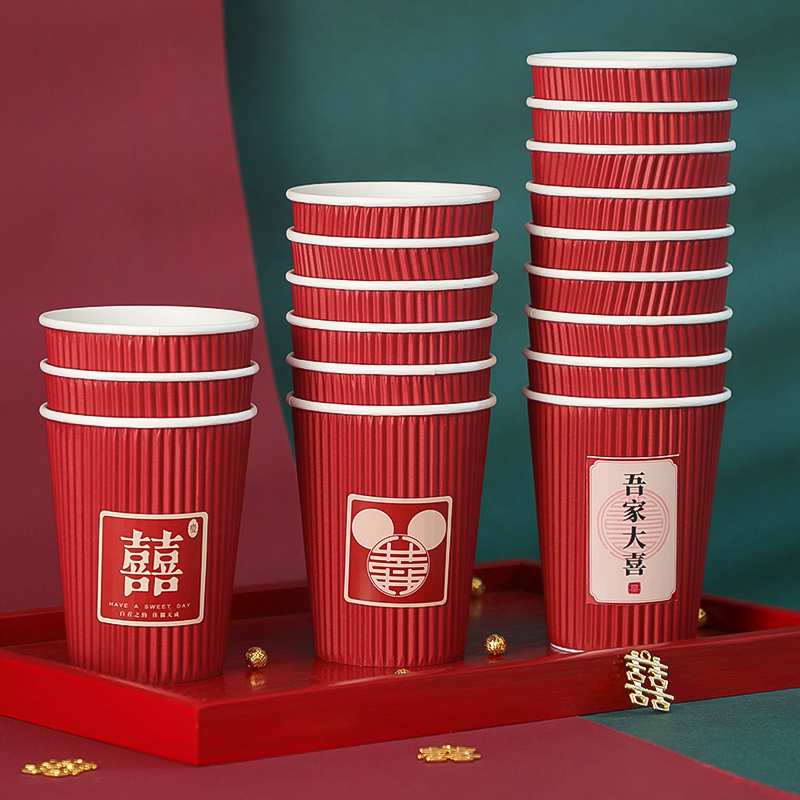 Wedding paper cup thickened wedding wedding banquet disposable hi cup household festive red paper cup wedding supplies Daquan