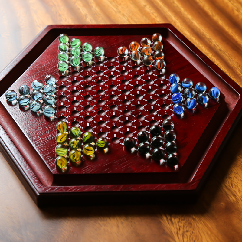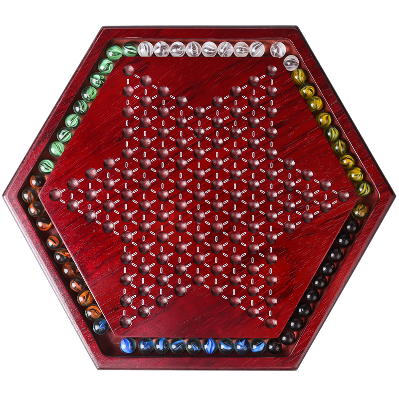 Chess-jump adult high-end ball glass ball colored chess board Yi old-fashioned large-scale children wooden parent-child hexagon
